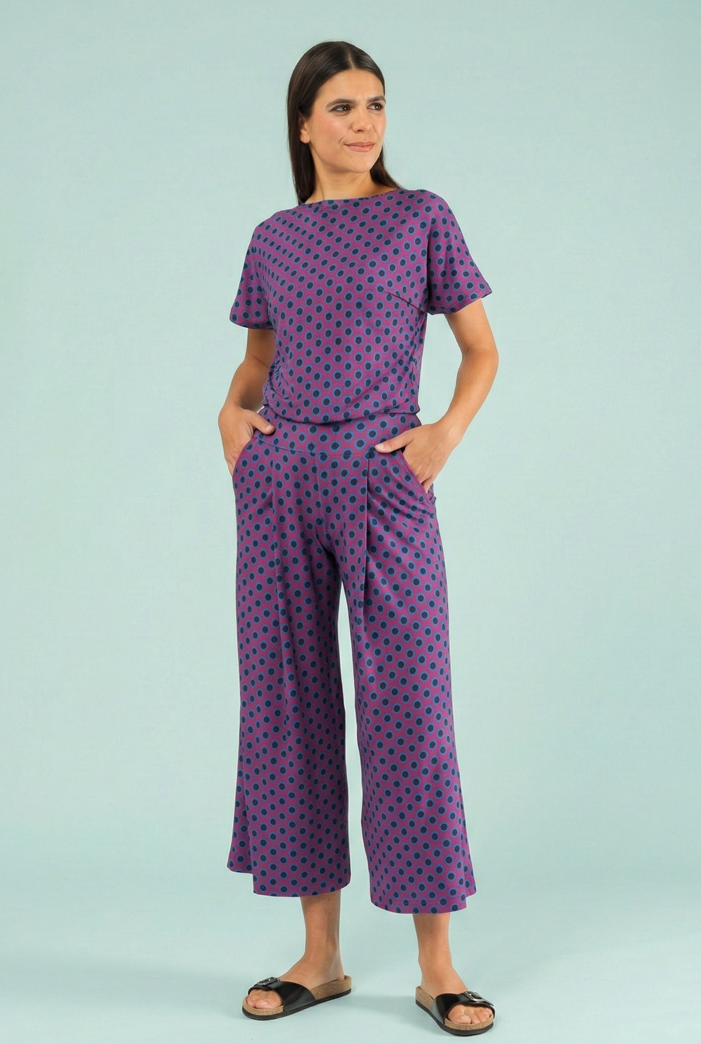 »Charlie« ist ein lässig-gemütlicher Jumpsuit, der dich herrlich bequem und entspannt durch den Sommer begleitet. Das weite Oberteil mit klassischem Rundhalsausschnitt und überschnittenen Ärmeln fällt locker über die Schultern. Der Hosenteil besitzt gerade, weite Beine in Culotte-Länge (7/8) und praktische Eingriffstaschen – für noch mehr Behaglichkeit. Oberteil und Hose sind durch ein etwa 9 cm breites Taillenbündchen verbunden, in das rundherum ein Gummizug eingearbeitet ist. So entscheidest Du selbst, ob Du das Bündchen auf Taille oder Hüfte trägst, ganz nach deinem Komfort. Ein kleiner Rückenschlitz am Ausschnitt mit Knopf und Gummi sorgt dafür, dass sich der Jumpsuit bequem an- und ausziehen lässt.